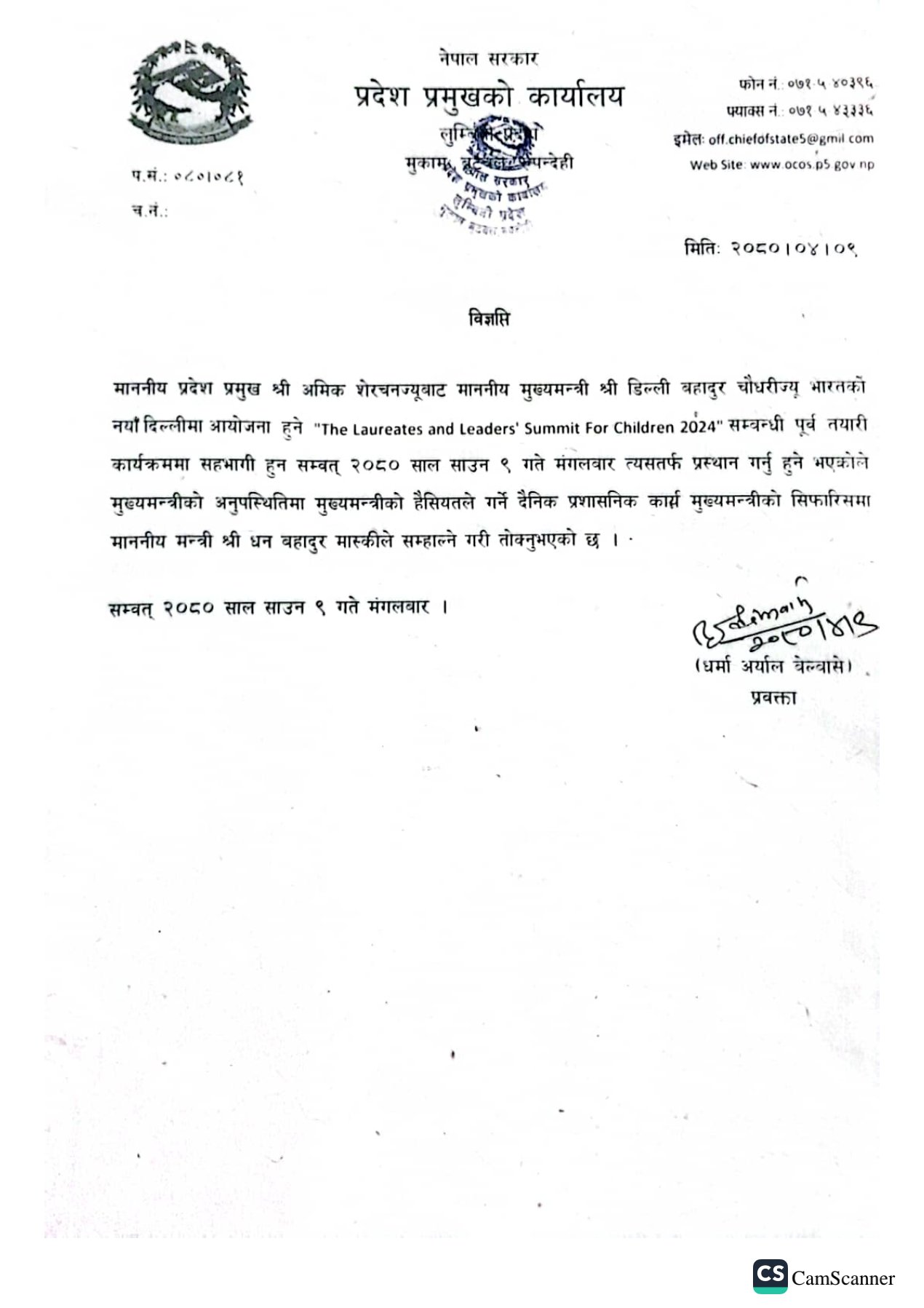 प्रदेश प्रमुखको कार्यालयको नागरिक वडापत्र