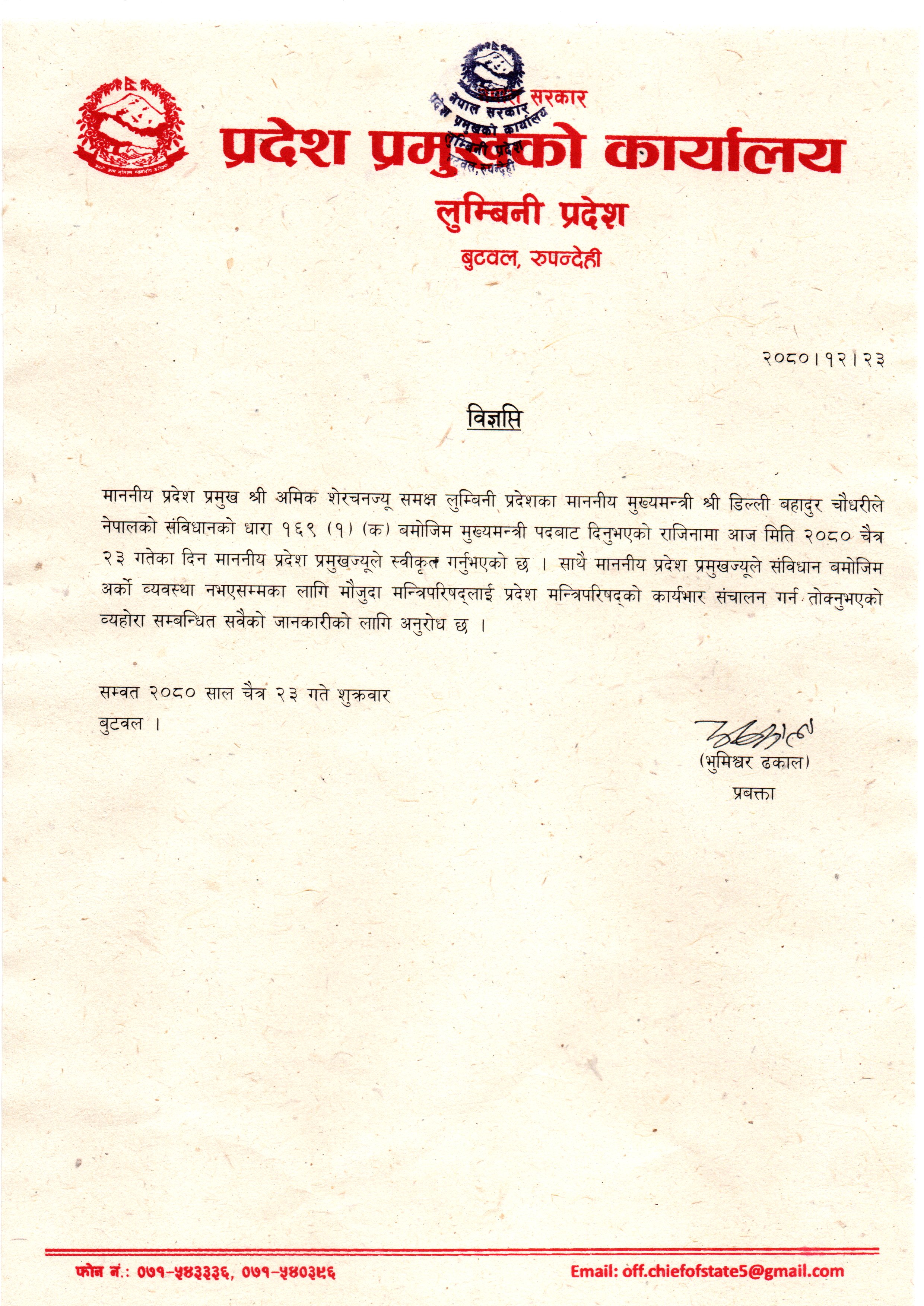 प्रदेश प्रमुखको कार्यालयको नागरिक वडापत्र