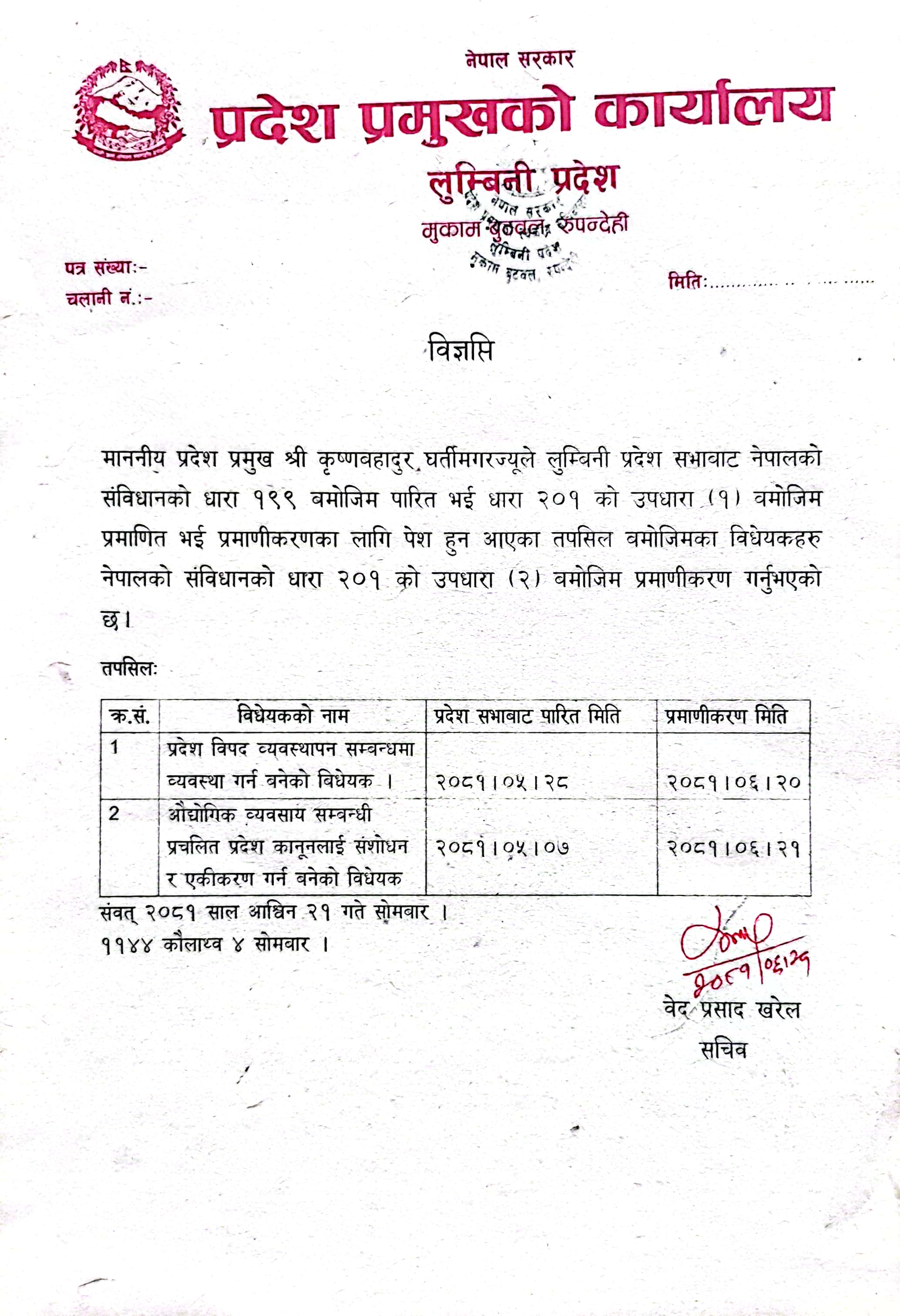 विधेयकहरु