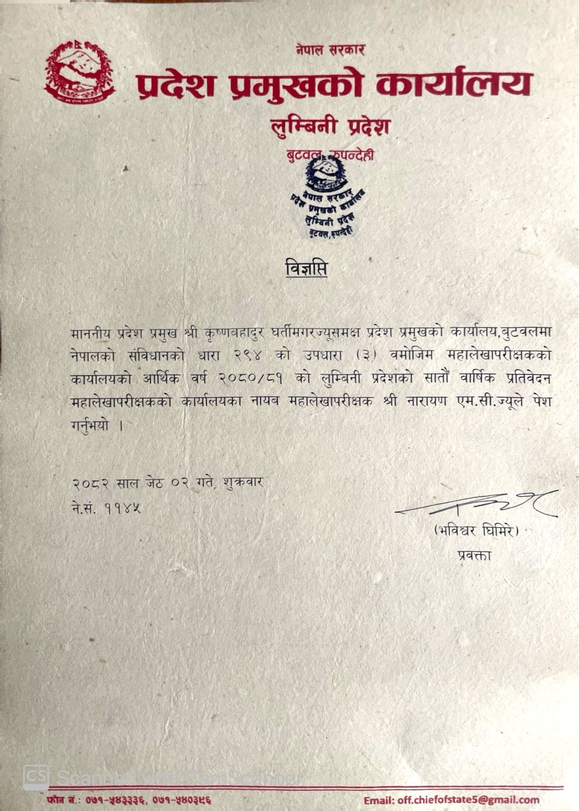 प्रदेश प्रमुखको कार्यालयको नागरिक वडापत्र