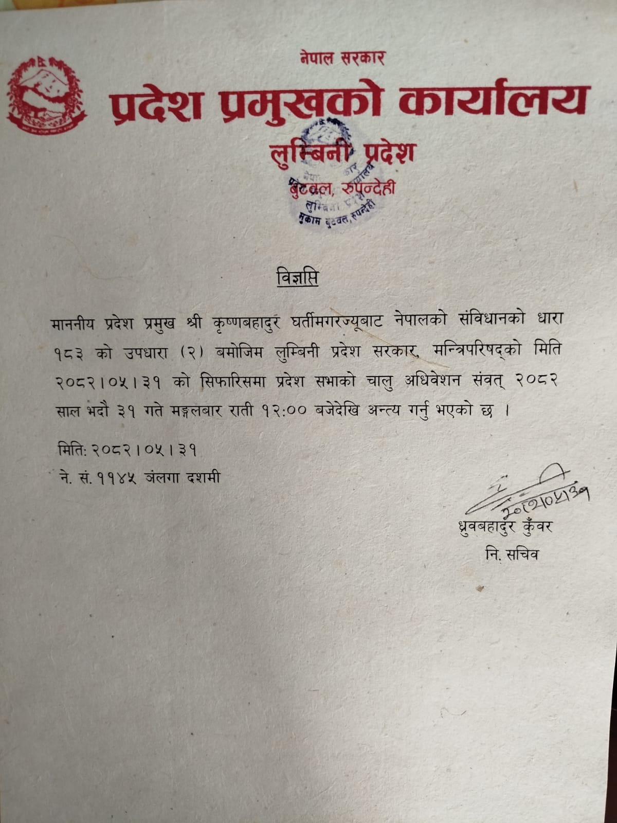 चालु अधिवेशन अन्त्यको विज्ञप्ति ।