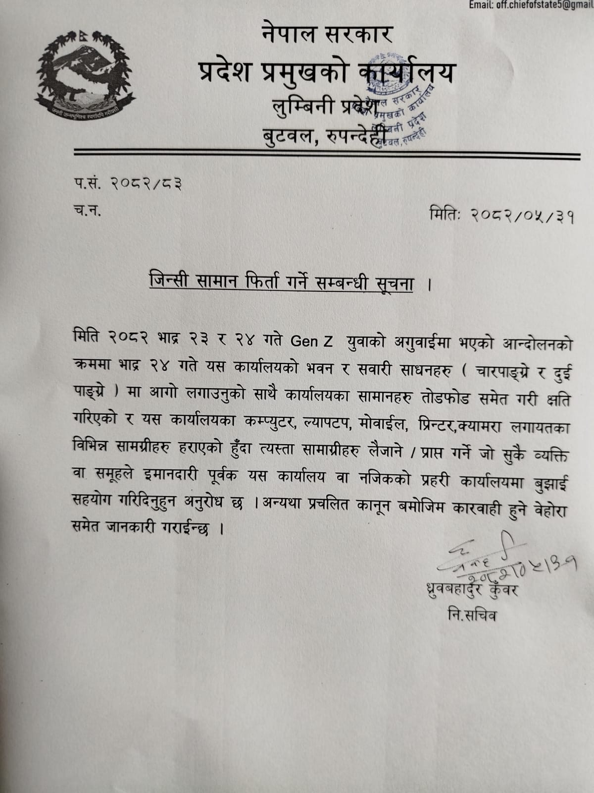 जिन्सी सामान फिर्ता गर्ने सम्बन्धी सूचना ।