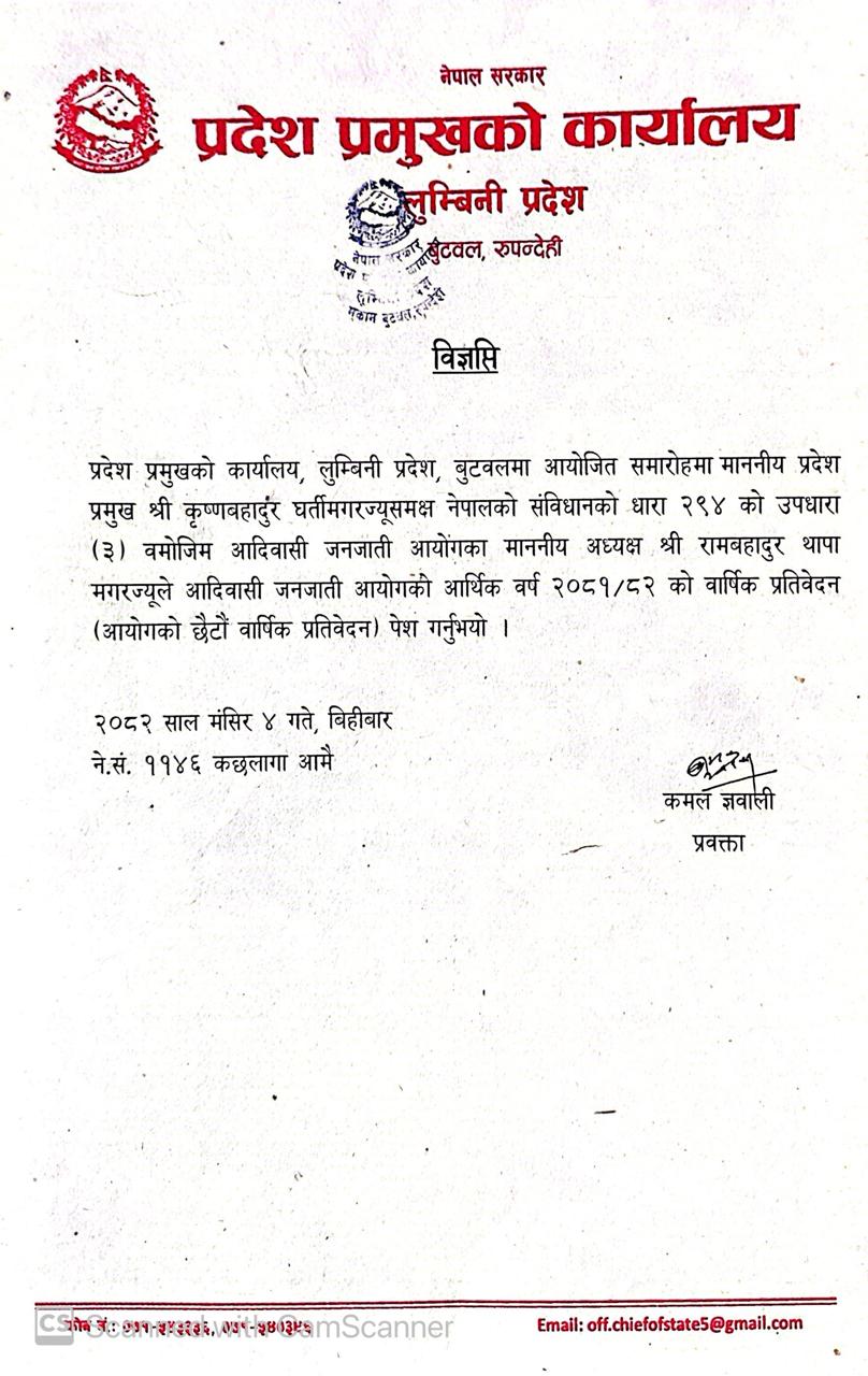 प्रदेश प्रमुखको कार्यालयको नागरिक वडापत्र